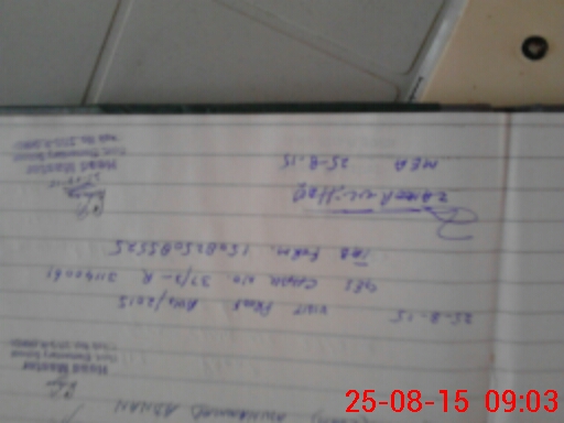 | Monitoring Date: 25-08-2015 | Start Time: 25-08-2015 07:42 AM | End Time: 25-08-2015 09:15 AM | Name of MEA: Za**** BN**** | |
