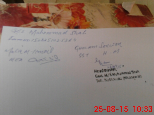 | Name: Ta**** sh**** Designation: (School Headmaster's/Headmistress's) ES.T.(Science) Phone/Cell Number: 03**** |