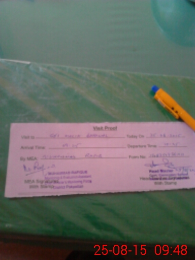 | Monitoring Date: 25-08-2015 | Start Time: 25-08-2015 09:36 AM | End Time: 25-08-2015 10:45 AM | Name of MEA: Mu**** Ra**** | |