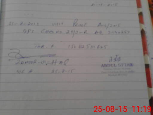 | Monitoring Date: 25-08-2015 | Start Time: 25-08-2015 10:38 AM | End Time: 25-08-2015 11:22 AM | Name of MEA: Za**** BN**** | |
