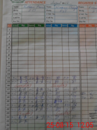 | CNIC | Full Name | Designation | R/C | Absence During Last Calender Month |