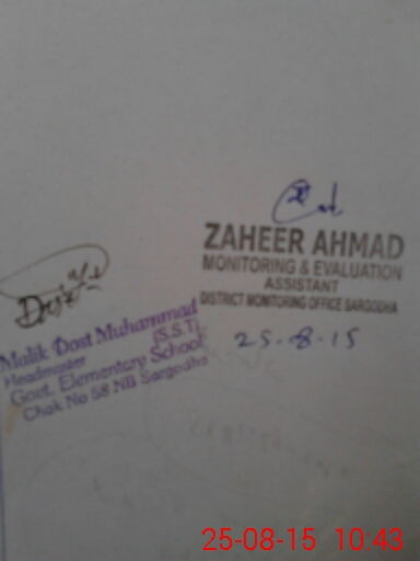 | EMIS Code: 38420142 | Name of School: GHS CHAK NO.58 NB | |||