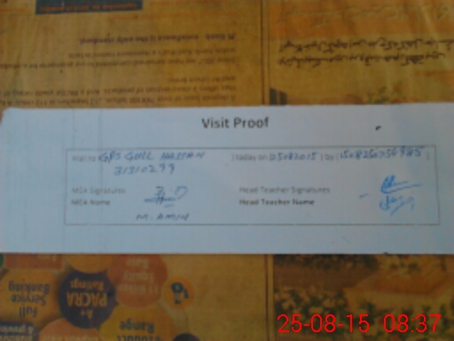 | Attendance Register | Head Teacher | MEA with School | Visit Proof |
