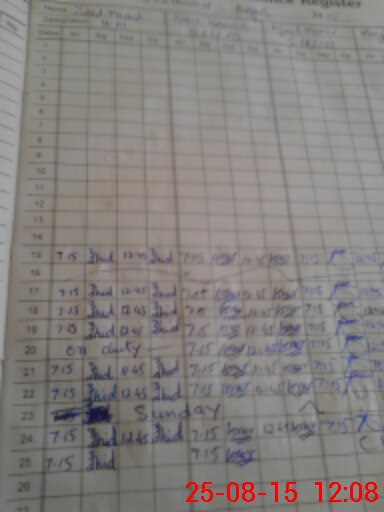 | Monitoring Date: 25-08-2015 | Start Time: 25-08-2015 11:06 AM | End Time: 25-08-2015 12:11 PM | Name of MEA: zI**** Kh**** | |