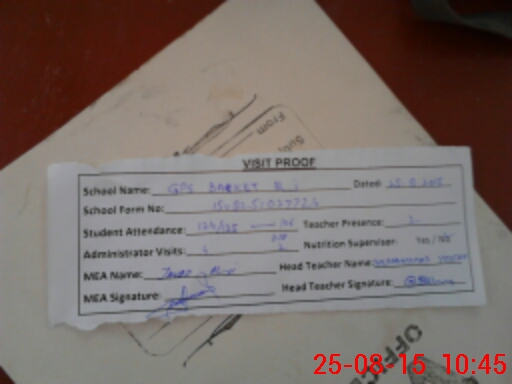 | Attendance Register | Head Teacher | MEA with School | Visit Proof |