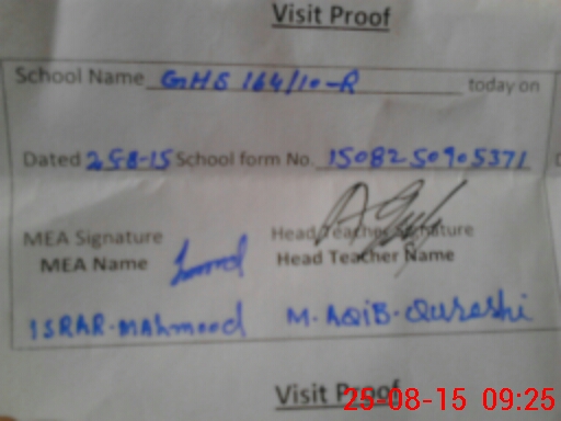 | Attendance Register | Head Teacher | MEA with School | Visit Proof |