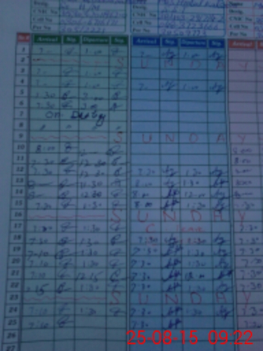 | CNIC | Full Name | Designation | R/C | Absence During Last Calender Month |