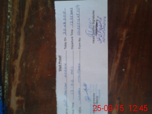 | School Visited by School Health & Nutrition Supervisor (No. of Visits) | Name1: | MOHAMMAD USMAN TALIB | Name2: | ||