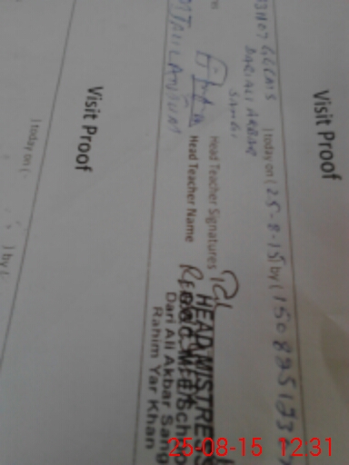 | Attendance Register | Head Teacher | MEA with School | Visit Proof |