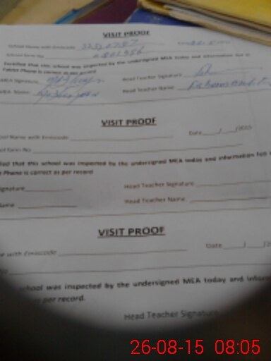 | Attendance Register | Head Teacher | MEA with School | Visit Proof |