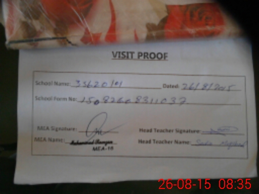 | Attendance Register | Head Teacher | MEA with School | Visit Proof |