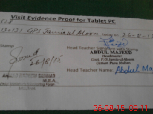 | EMIS Code: 36130131 | Name of School: GPS JAMI UL ALOOM DOULAT GATE MULTAN | |||