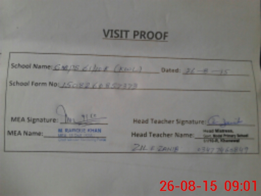 | Attendance Register | Head Teacher | MEA with School | Visit Proof |