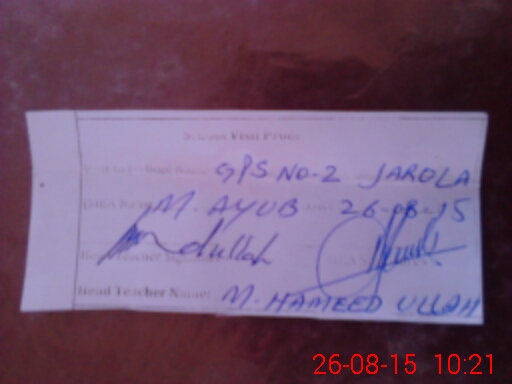 | School Visited by School Health & Nutrition Supervisor (No. of Visits) | Name1: | FOZIA BATOOL | Name2: | ||