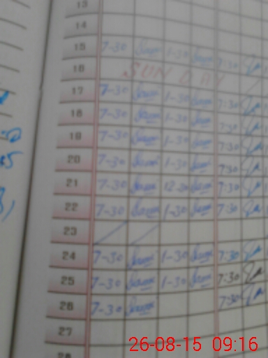 | Monitoring Date: 26-08-2015 | Start Time: 26-08-2015 08:55 AM | End Time: 26-08-2015 09:20 AM | Name of MEA: Ma**** Ah**** -S**** | |