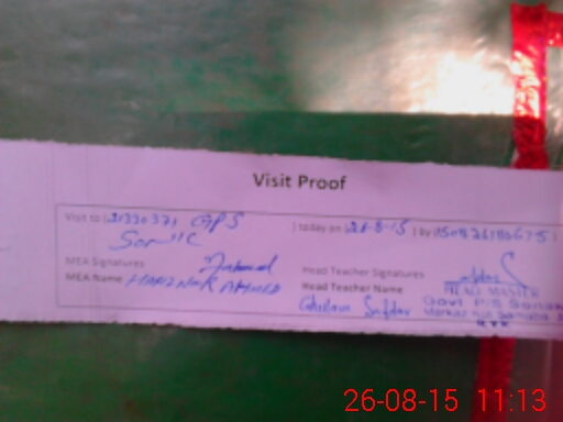 | Attendance Register | Head Teacher | MEA with School | Visit Proof |