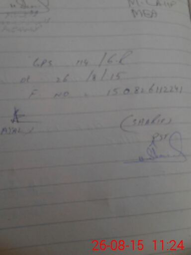 | Monitoring Date: 26-08-2015 | Start Time: 26-08-2015 11:06 AM | End Time: 26-08-2015 11:26 AM | Name of MEA: Ay**** Me**** BN**** 13 | |