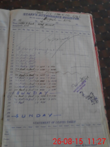 | CNIC | Full Name | Designation | R/C | Absence During Last Calender Month |