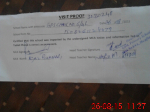| Attendance Register | Head Teacher | MEA with School | Visit Proof |