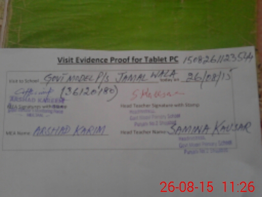 | Attendance Register | Head Teacher | MEA with School | Visit Proof |