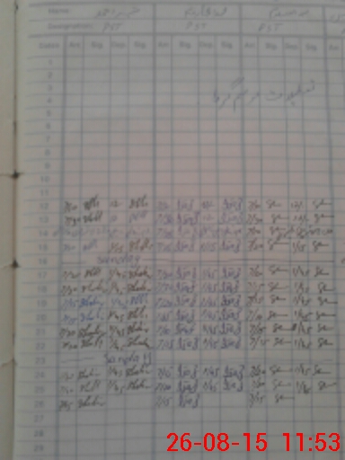 | CNIC | Full Name | Designation | R/C | Absence During Last Calender Month |