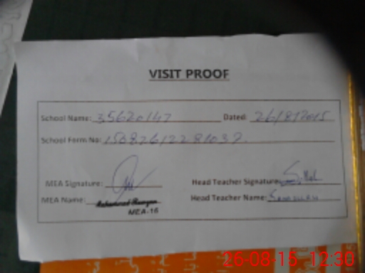 | Attendance Register | Head Teacher | MEA with School | Visit Proof |