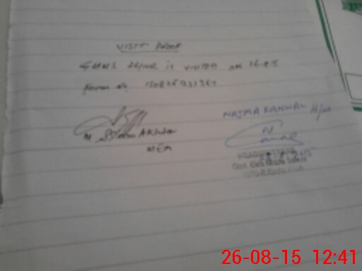 | Monitoring Date: 26-08-2015 | Start Time: 26-08-2015 12:20 PM | End Time: 26-08-2015 01:07 PM | Name of MEA: MU**** SA**** AK**** 13**** | |