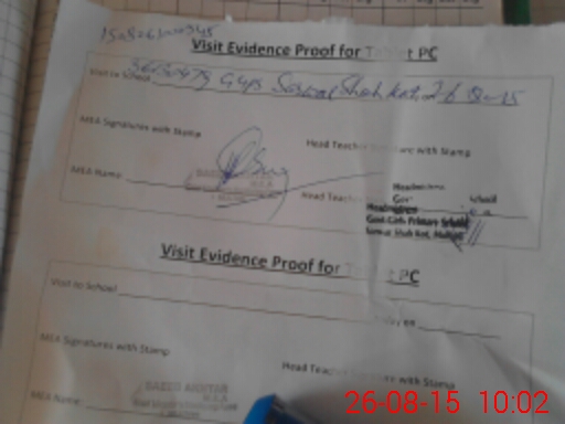 | Attendance Register | Head Teacher | MEA with School | Visit Proof |