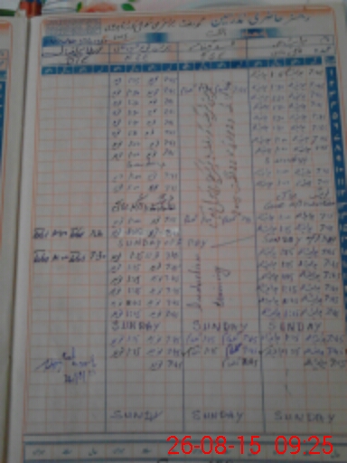 | CNIC | Full Name | Designation | R/C | Absence During Last Calender Month |