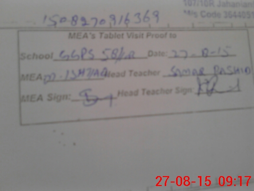 | Attendance Register | Head Teacher | MEA with School | Visit Proof |