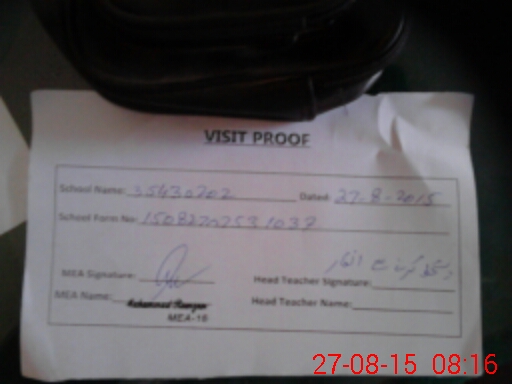 | Attendance Register | Head Teacher | MEA with School | Visit Proof |