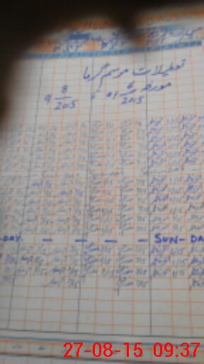 | Monitoring Date: 27-08-2015 | Start Time: 27-08-2015 09:15 AM | End Time: 27-08-2015 09:42 AM | Name of MEA: A-**** KH**** HU**** AS**** | |