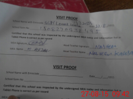 | Attendance Register | Head Teacher | MEA with School | Visit Proof |