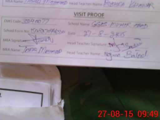 | Attendance Register | Head Teacher | MEA with School | Visit Proof |