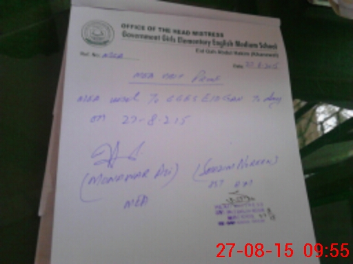 | Name: SE**** KH**** Designation: (School Headmaster's/Headmistress's) S.S.T SC Phone/Cell Number: 03**** |
