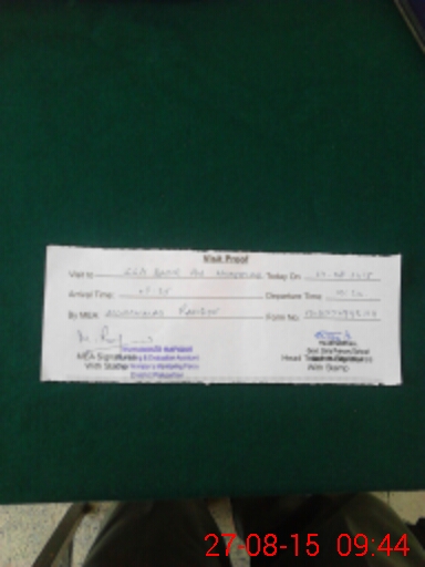| Monitoring Date: 27-08-2015 | Start Time: 27-08-2015 09:33 AM | End Time: 27-08-2015 10:06 AM | Name of MEA: Mu**** Ra**** | |