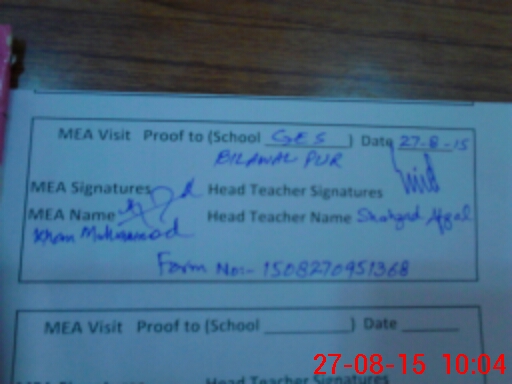 | Certified that this School was Inspected by the Undersigned MEA/DMO Today and the Information Stated Above is as Per Record. | |||||