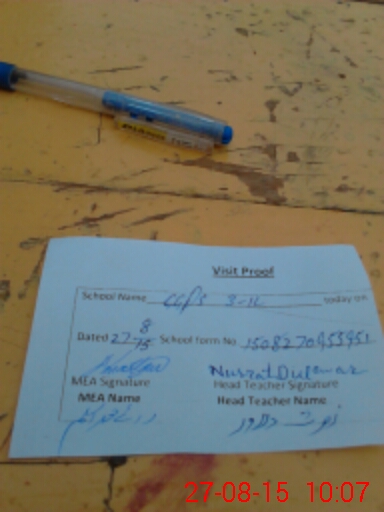 | Attendance Register | Head Teacher | MEA with School | Visit Proof |