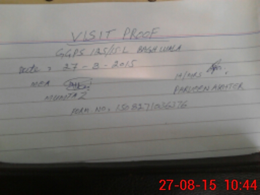 | School Visited by School Health & Nutrition Supervisor (No. of Visits) | 1 | Name1: | Mazhar | Name2: | |