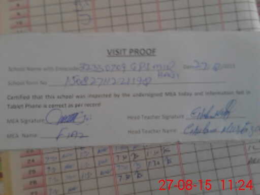 | Attendance Register | Head Teacher | MEA with School | Visit Proof |