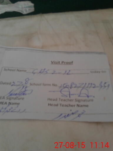 | School Visited by School Health & Nutrition Supervisor (No. of Visits) | 2 | Name1: | M IMRAN | Name2: | M IMRAN |