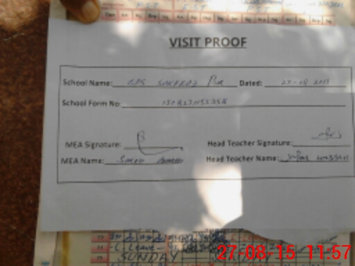 | Attendance Register | Head Teacher | MEA with School | Visit Proof |