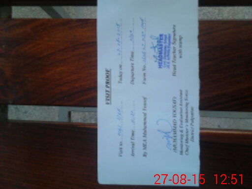 | Attendance Register | Head Teacher | MEA with School | Visit Proof |
