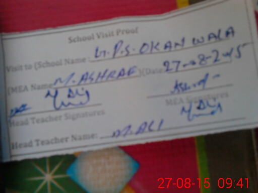 | EMIS Code: 38450290 | Name of School: GPS OKAN WALA | |||