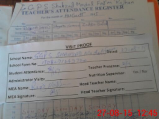 | Attendance Register | Head Teacher | MEA with School | Visit Proof |