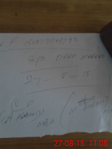 | Monitoring Date: 27-08-2015 | Start Time: 27-08-2015 10:54 AM | End Time: 27-08-2015 11:10 AM | Name of MEA: Eh**** Ba**** Bh**** | |