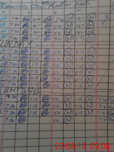 | Monitoring Date: 27-08-2015 | Start Time: 27-08-2015 08:53 AM | End Time: 27-08-2015 09:22 AM | Name of MEA: Ja**** Hu**** | |