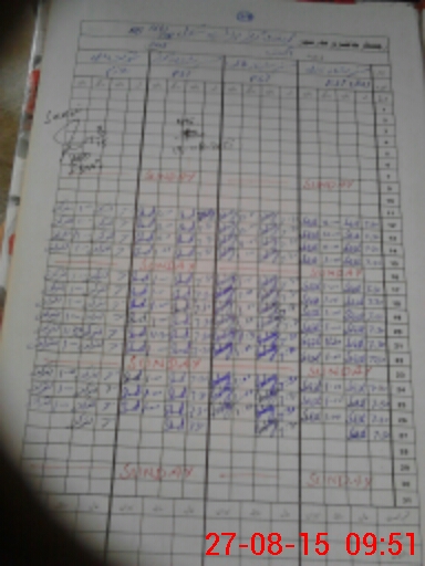 | Monitoring Date: 27-08-2015 | Start Time: 27-08-2015 09:34 AM | End Time: 27-08-2015 09:57 AM | Name of MEA: Mu**** Ta**** BN**** 26 | |