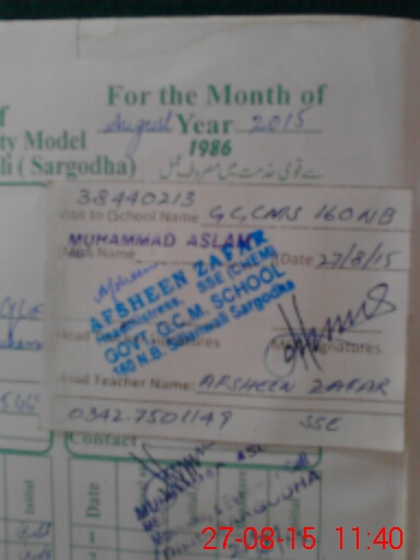 | School Visited by School Health & Nutrition Supervisor (No. of Visits) | 1 | Name1: | KHAWAR HAYAT SHAH | Name2: | |