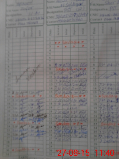 | CNIC | Full Name | Designation | R/C | Absence During Last Calender Month |